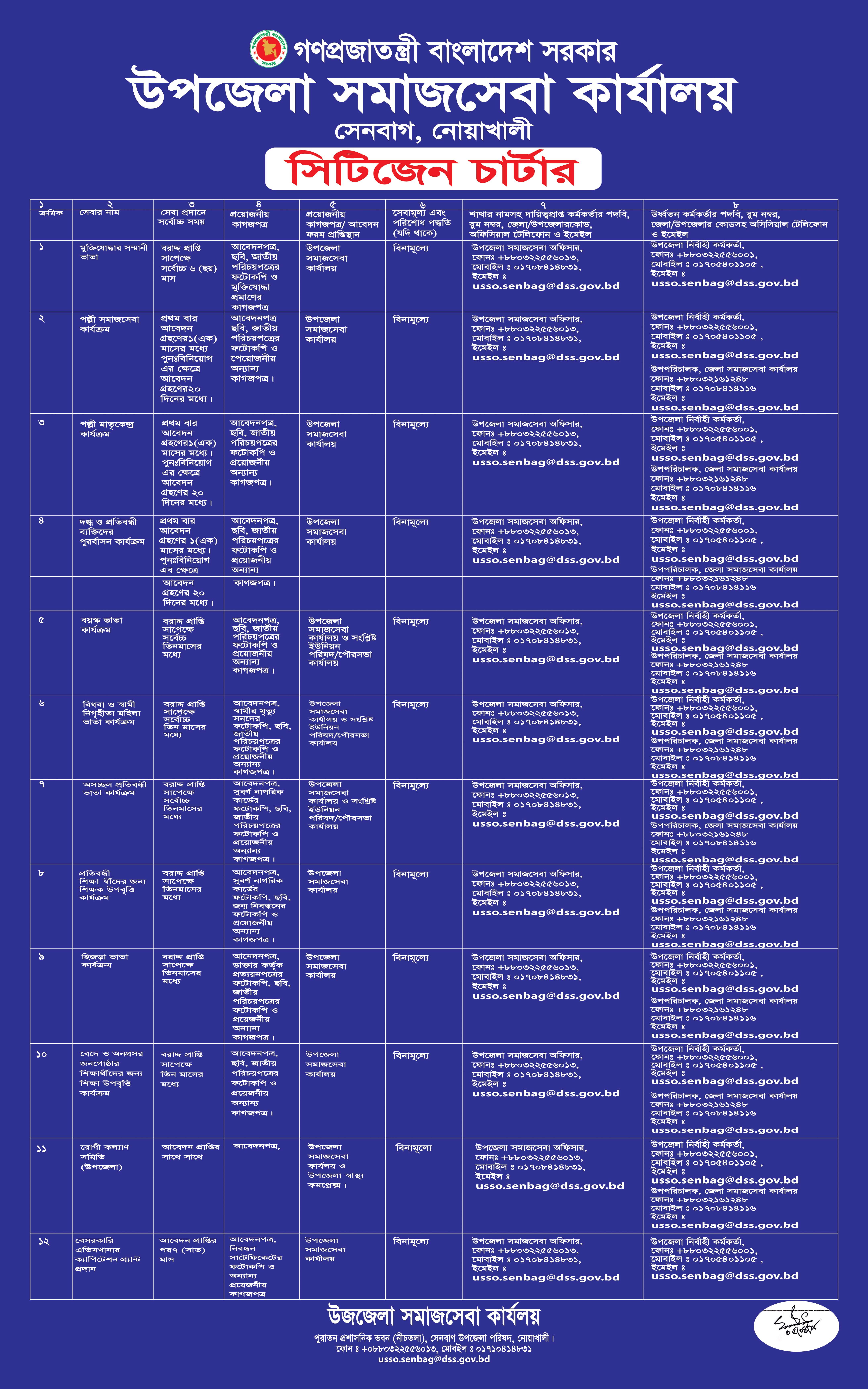| উপজেলা সমাজসেবা কার্যালয়, সেনবাগ, নোয়াখালী। ০১৭০৮৪১৪৮৩১ |